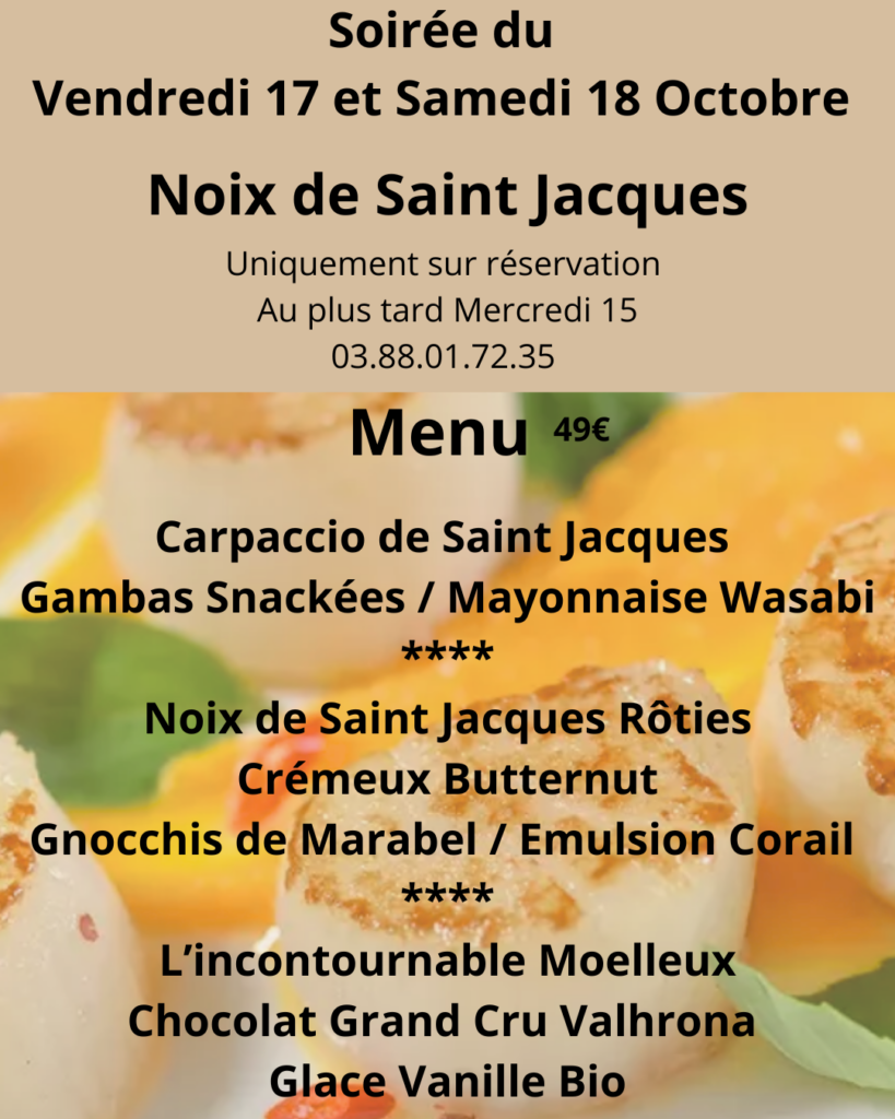 Entrée + Plat 15€ – Le Plat 12,50€ / Vendredi Entrée + Poisson Frais 17€
