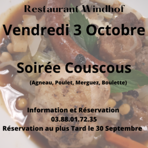 « Tous les Évènements Cet évènement est passé Couscous 3 octobre à partir de 19H00 - 23H30 « Soirée Burger Noix de Saint Jacques » Partager sur Facebook Ajouter au calendrier Google Agenda iCalendar Outlook 365 Outlook Live Détails Date : 3 octobre Heure : 19H00 - 23H30