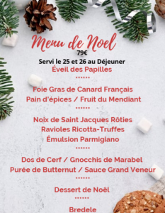 « Tous les Évènements Menu de Noël 25 décembre à partir de 12H00 - 26 décembre à partir de 16H30 « Rognons de Veau Partager sur Facebook Ajouter au calendrier Google Agenda iCalendar Outlook 365 Outlook Live Détails Début : 25 décembre à partir de 12H00 Fin : 26 décembre à partir de 16H30